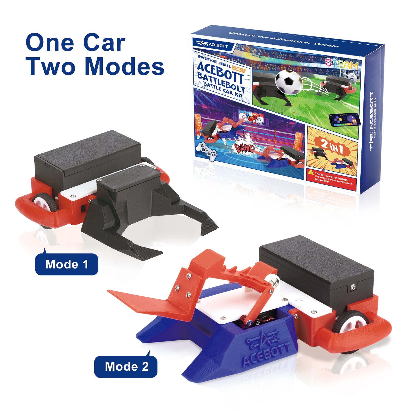Build, program, and compete! The ACEBOTT Battle Car Kit lets kids create a dual-mode robot that plays football or battles in the arena using smart coding and fun controls.