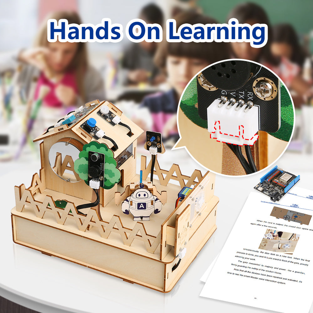 Start small, think big—this smart home kit teaches kids how real-life automation works inside a charming wooden house model.