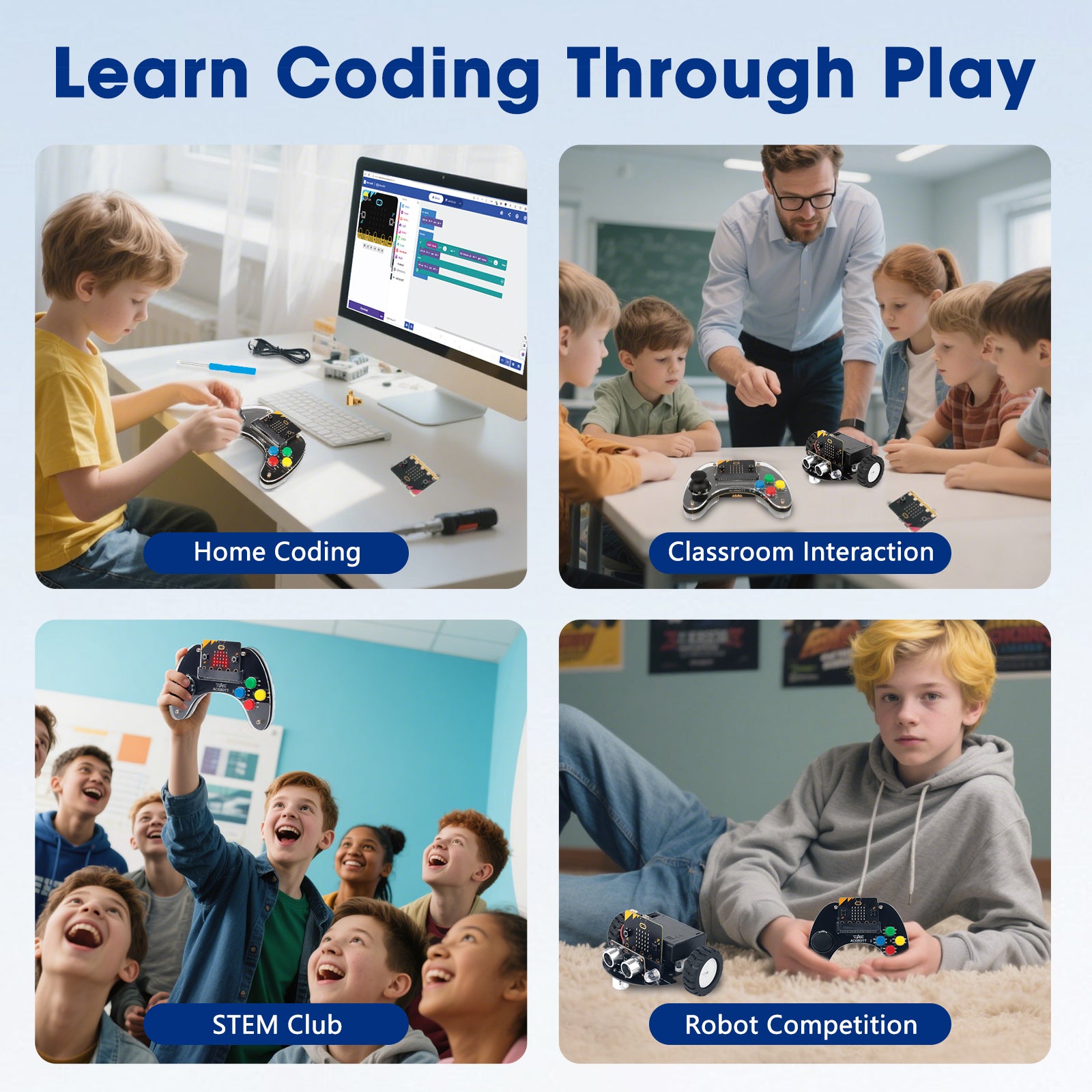 - STEM Learning Kit for Kids – Combines hands-on building, block coding, and smart control in a fun, educational Micro:bit kit—perfect for classrooms, STEM clubs, or home use.